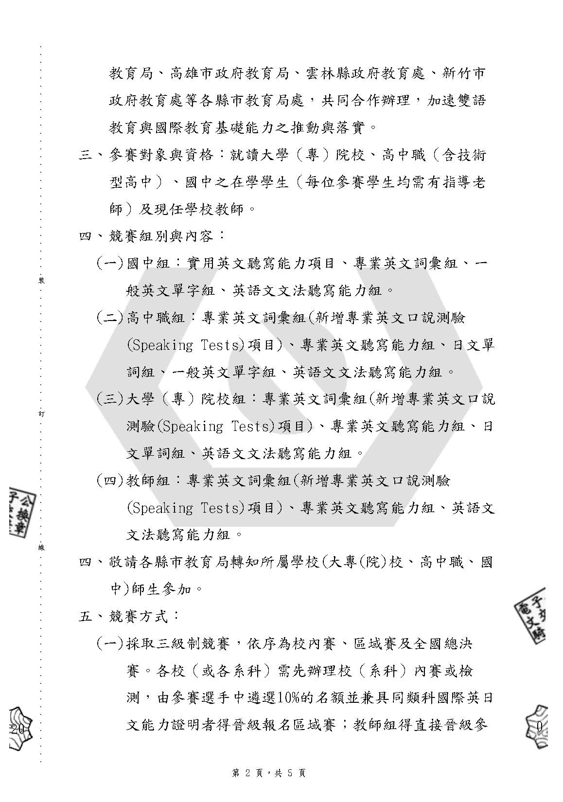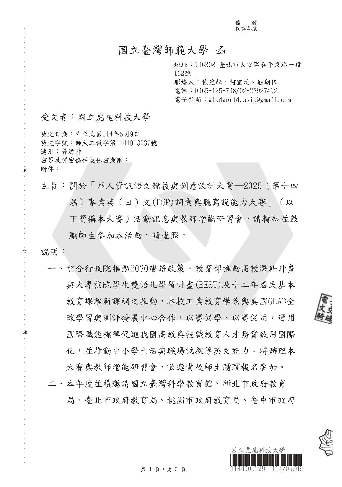 臺灣師範大學辦理華人資訊語文競技與創意設計大賞─2025(第十四 屆)專業英(日)文(ESP)詞彙與聽寫說能力大賽