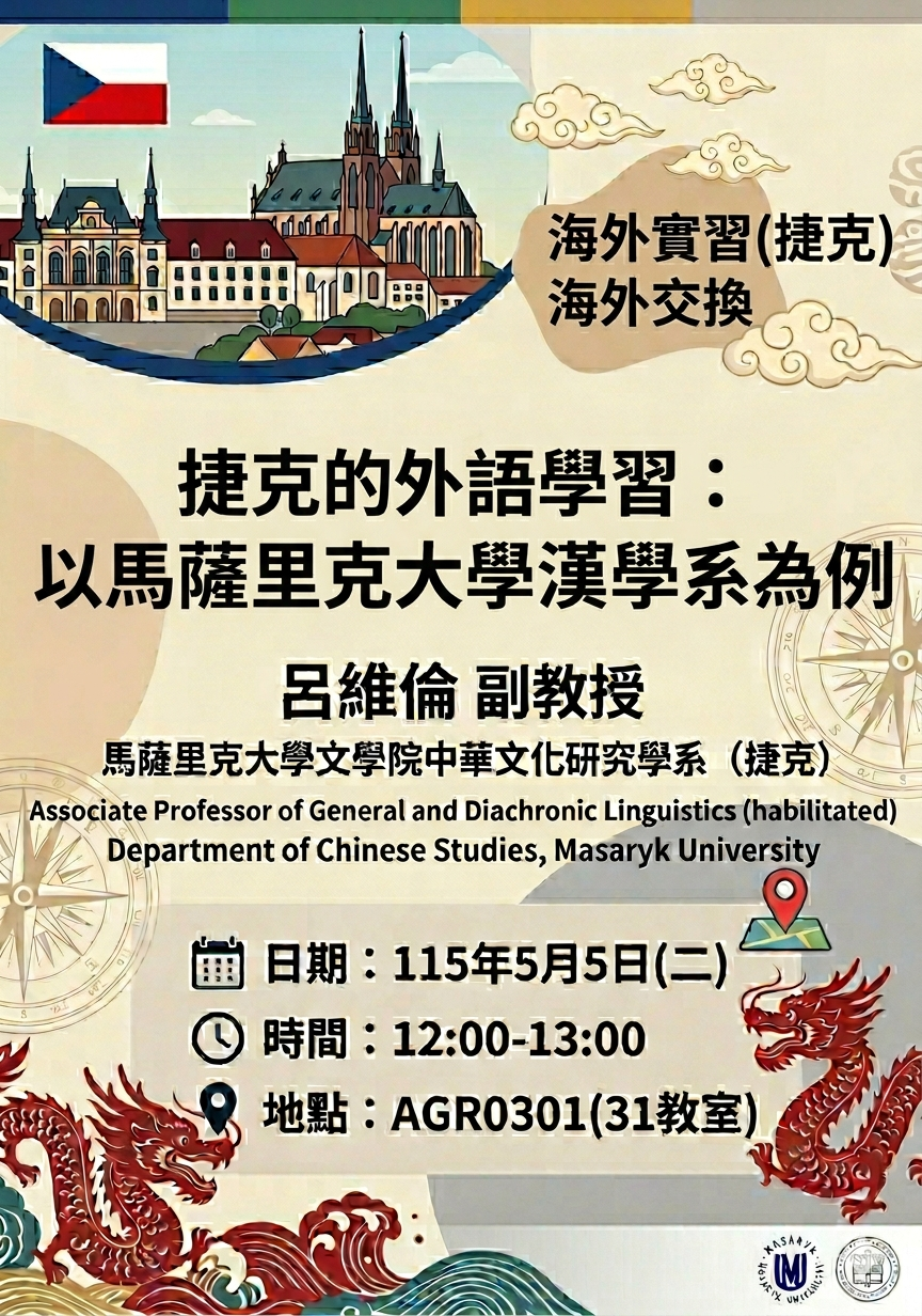 2026.05.05 海外實習(捷克)-捷克的外語學習:以馬薩里克大學漢學系為例(分享者: 呂維倫 副教授)