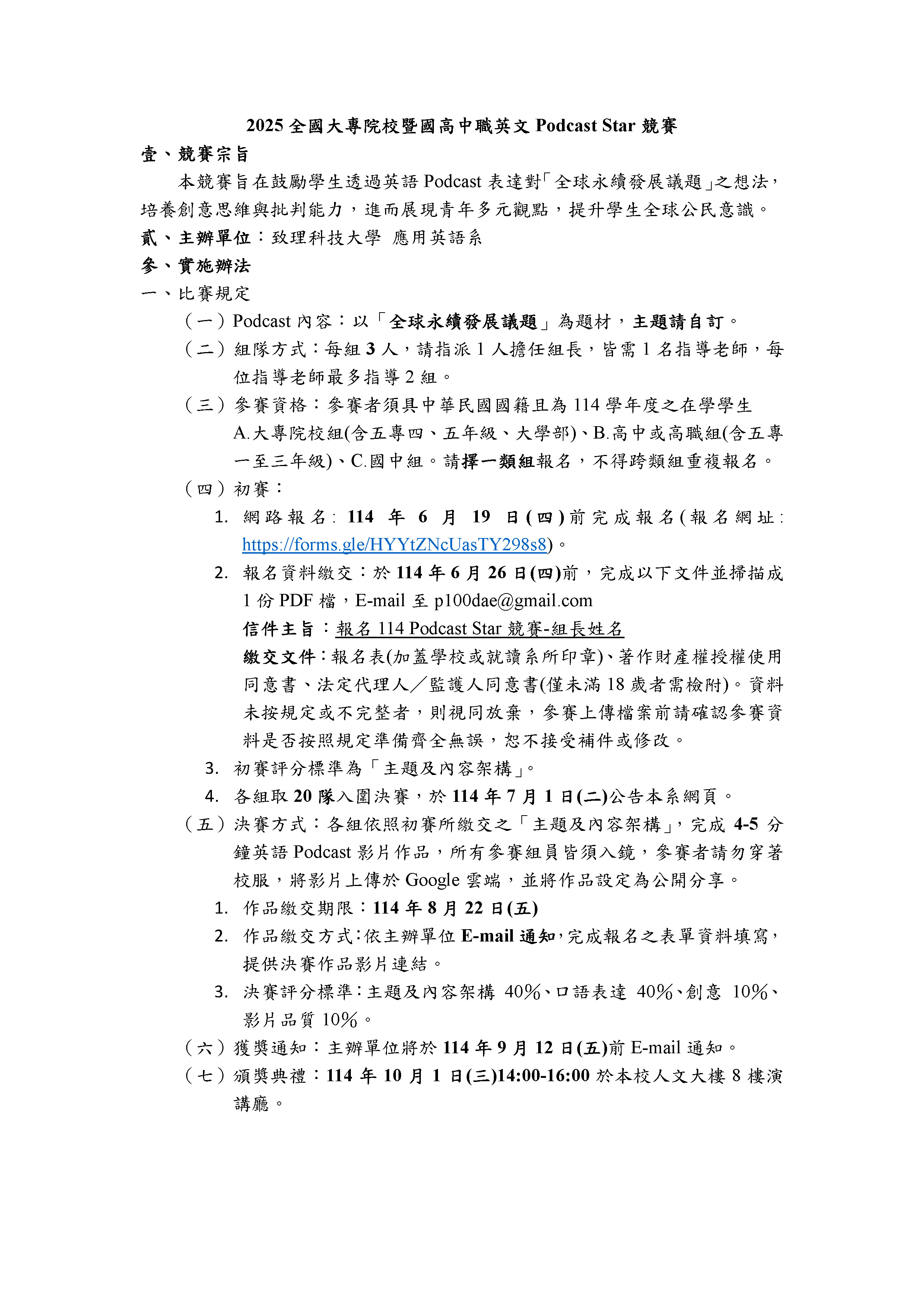 致理科技大學-2025全國大專院校暨國高中職 英文Podcast Star競賽